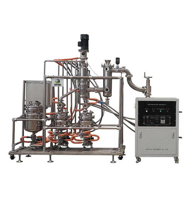 刮膜式分子蒸餾是利用刮板系統(tǒng)強制將液體成膜而進行蒸發(fā)或蒸餾的一種高效蒸發(fā)、蒸餾設備,也可以進行脫臭、脫泡反應及加熱、冷卻等單元操作,可廣泛適用于中、西制藥、食品、輕功、石油、化工、環(huán)保等行業(yè)。該系統(tǒng)還可用于從工業(yè)廢液中回收有機溶劑的工藝。