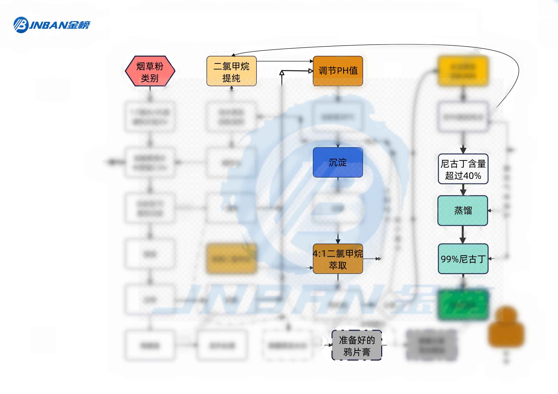 我們擁有完善的尼古丁提取生產(chǎn)線。日處理煙葉100KG-100T,提取率高,尼古丁純度高
