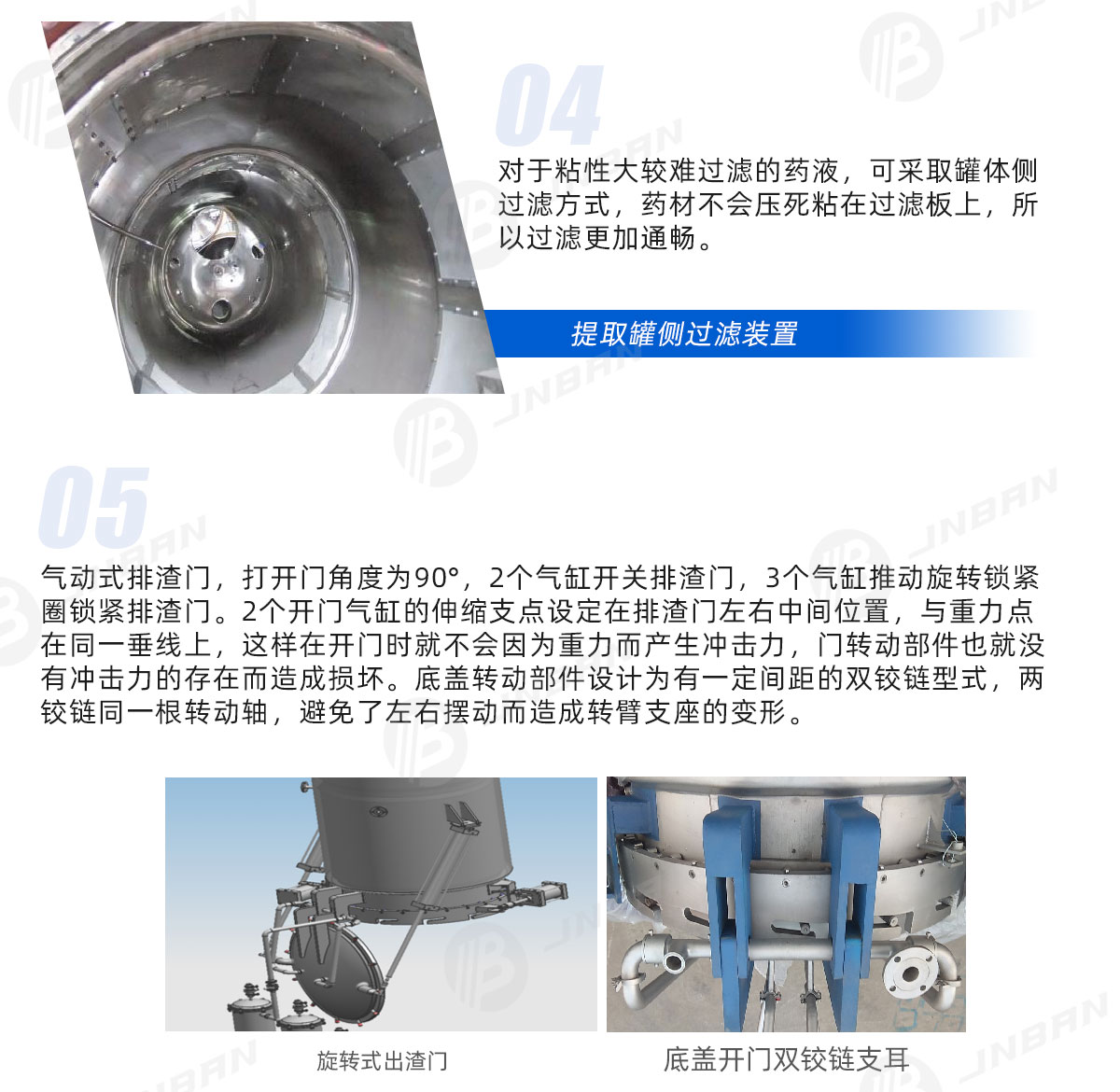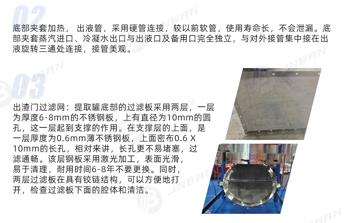 結(jié)合德國E&E提取罐的特點(diǎn),重新設(shè)計(jì)開發(fā)新一代提取罐。在加熱、過濾、排渣、及排渣門的密封上有很大的改進(jìn),實(shí)用多年來得到用戶的肯定。