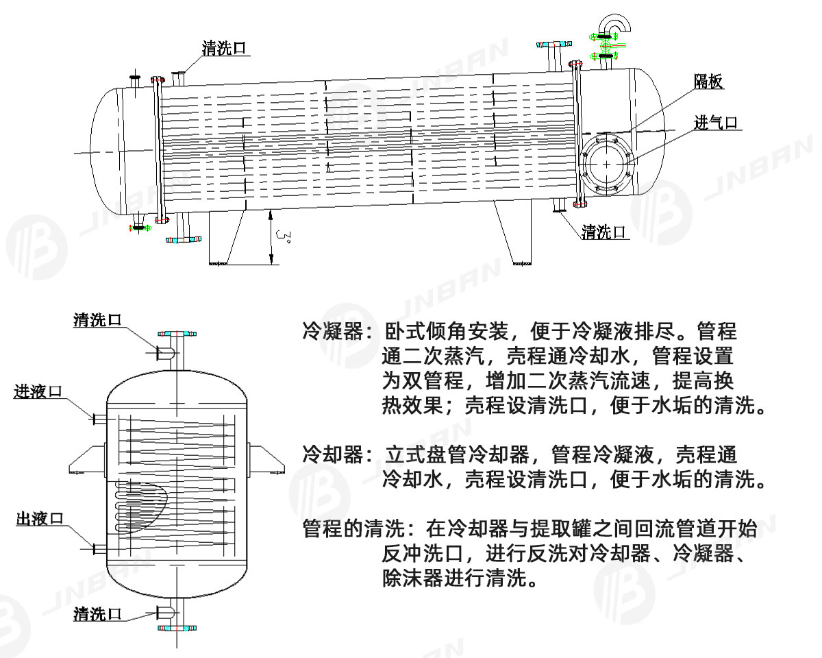 這部分作為傳熱材料來冷卻提取物和溶劑。