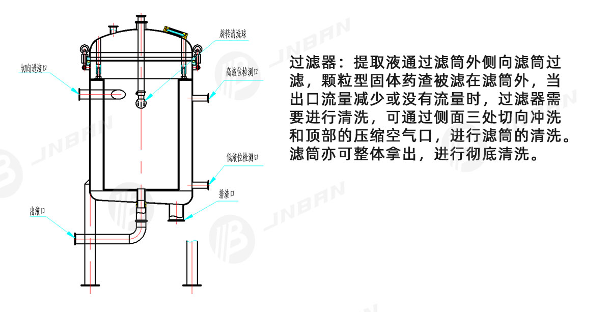 本設(shè)備適用于制藥、生物、飲料、食品、化工等行業(yè)的植物、動(dòng)物的常壓、加壓、水煎、溫浸、熱回流、強(qiáng)制循環(huán)、滲漉、芳香油提取及有機(jī)溶媒回收等工藝操作,特別是使用動(dòng)態(tài)提取或多罐逆流提取效果更佳,時(shí)間短,藥液含量高。配備罐體配備CIP清洗自動(dòng)旋轉(zhuǎn)噴洗球、溫度表、壓力表、防爆視孔燈、視鏡、快開式投料口等,確保操作簡便,符合GMP標(biāo)準(zhǔn)。