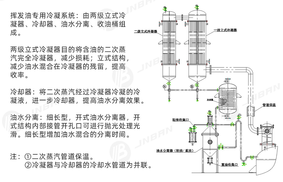 組成部分:設(shè)備由罐體、除沫器、冷凝器、冷卻器、油水分離器、收油筒、雙聯(lián)過濾器、輸送泵及內(nèi)部管道組成。