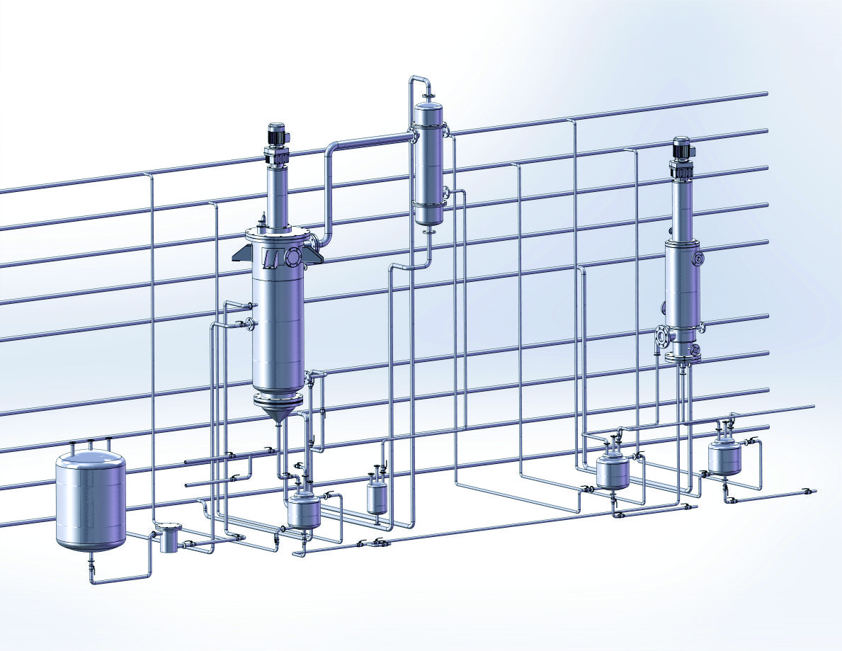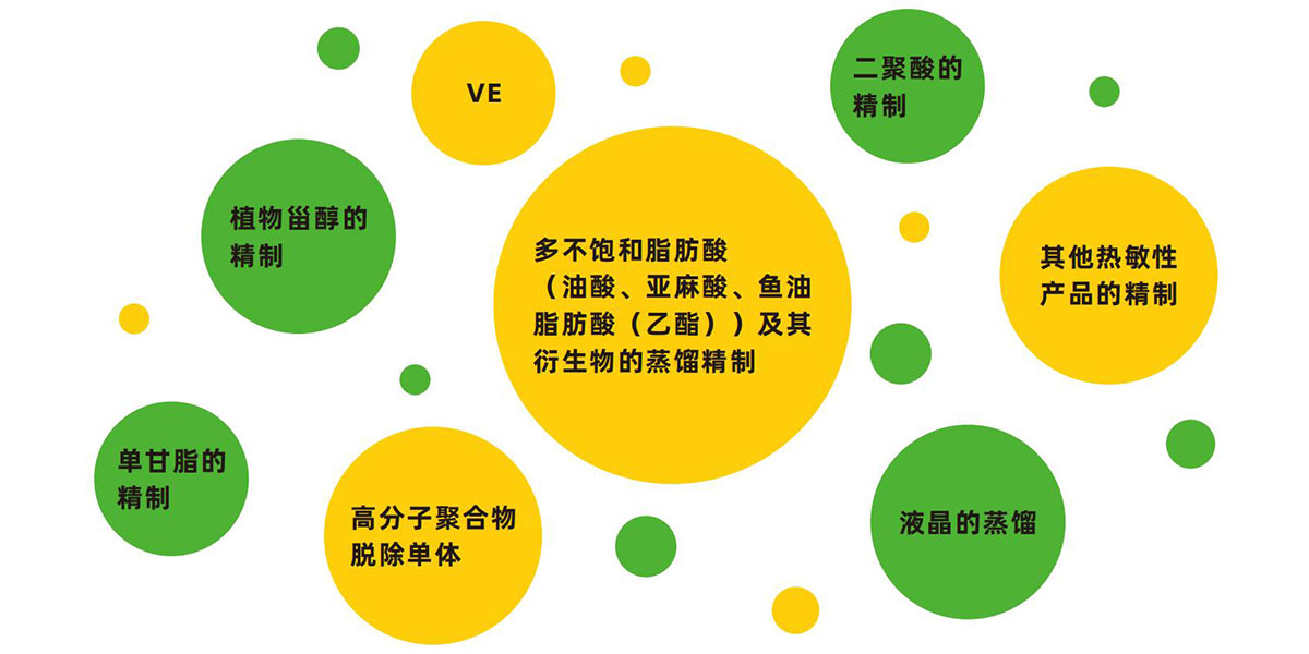 可代替常規(guī)降膜蒸發(fā)器,用于食品、醫(yī)藥、石化、化工及油脂化學(xué)產(chǎn)品的蒸餾、提純、濃縮、脫色使用,尤其適用于熱敏性,易氧化的生物及化學(xué)工業(yè)品的蒸餾精制,也可用于高沸點(diǎn)產(chǎn)品的蒸餾分離
