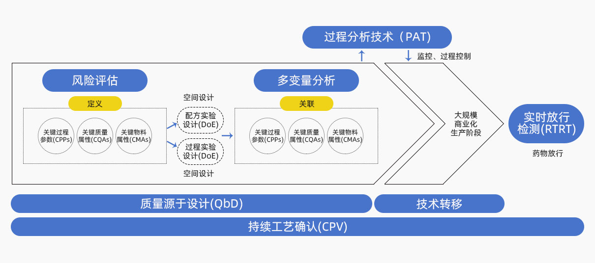 2004年,美國食品藥品監(jiān)督管理局(FDA)發(fā)布《21世紀(jì)藥品生產(chǎn)質(zhì)量管理規(guī)范——基于風(fēng)險(xiǎn)的方法》,正式啟動(dòng)過程分析技術(shù)(PAT)倡議,其核心是通過實(shí)時(shí)監(jiān)測、數(shù)據(jù)分析和反饋控制,實(shí)現(xiàn)“質(zhì)量源于設(shè)計(jì)”(QbD)的理念,旨在通過工藝開發(fā)、生產(chǎn)與質(zhì)量保障體系的創(chuàng)新,降低藥品制造中的公共衛(wèi)生風(fēng)險(xiǎn)。